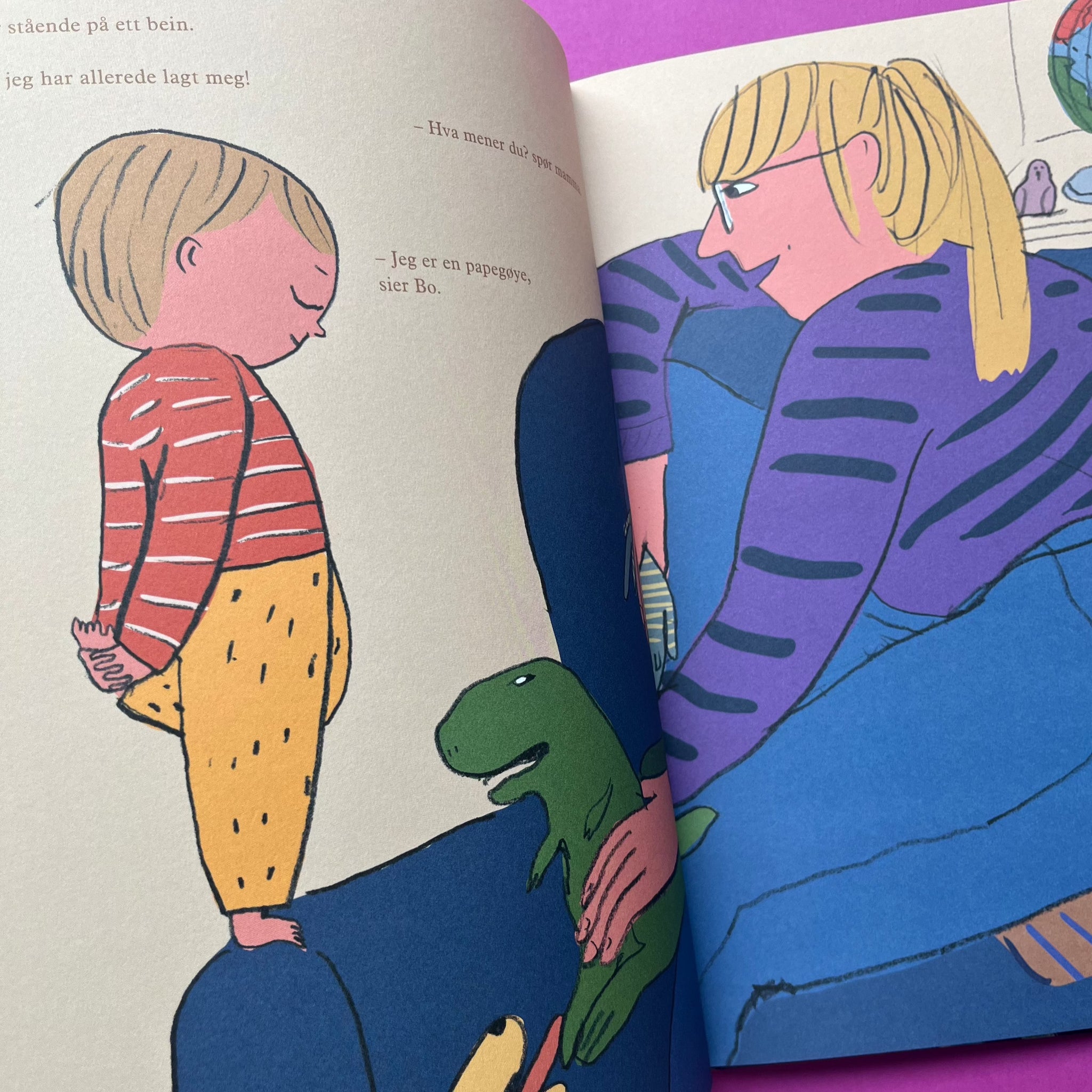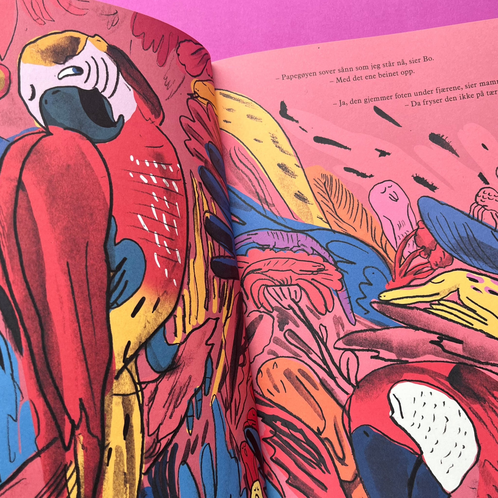 Det er lite tekst, og formatet på boka er stort - så her får virkelig illustrasjonene god plass. Det er fint, for disse fargesprakende barnlige illustrasjonene er virkelig nydelige. Boka ble nominert til Brageprisen i 2021 i kategorien barn og unge. Den vant også prisen Årets vakreste bok, har fått en utmerkelse under Bologna Ragazzi Award under barnebokmessen i Bologna og ble kåret til en av årets ti beste barnebøker i New York Times i 2022. Og med god grunn mener vi :-)