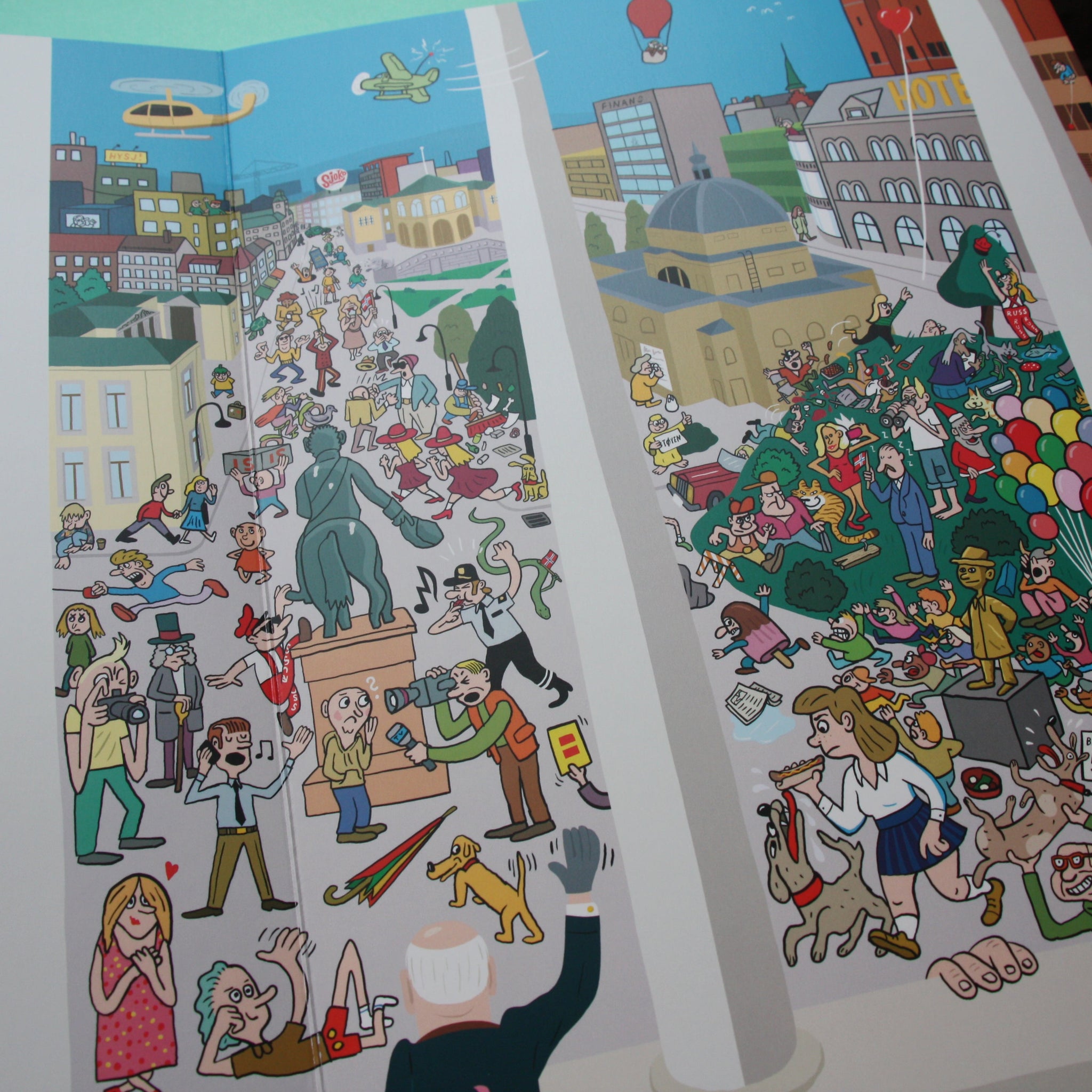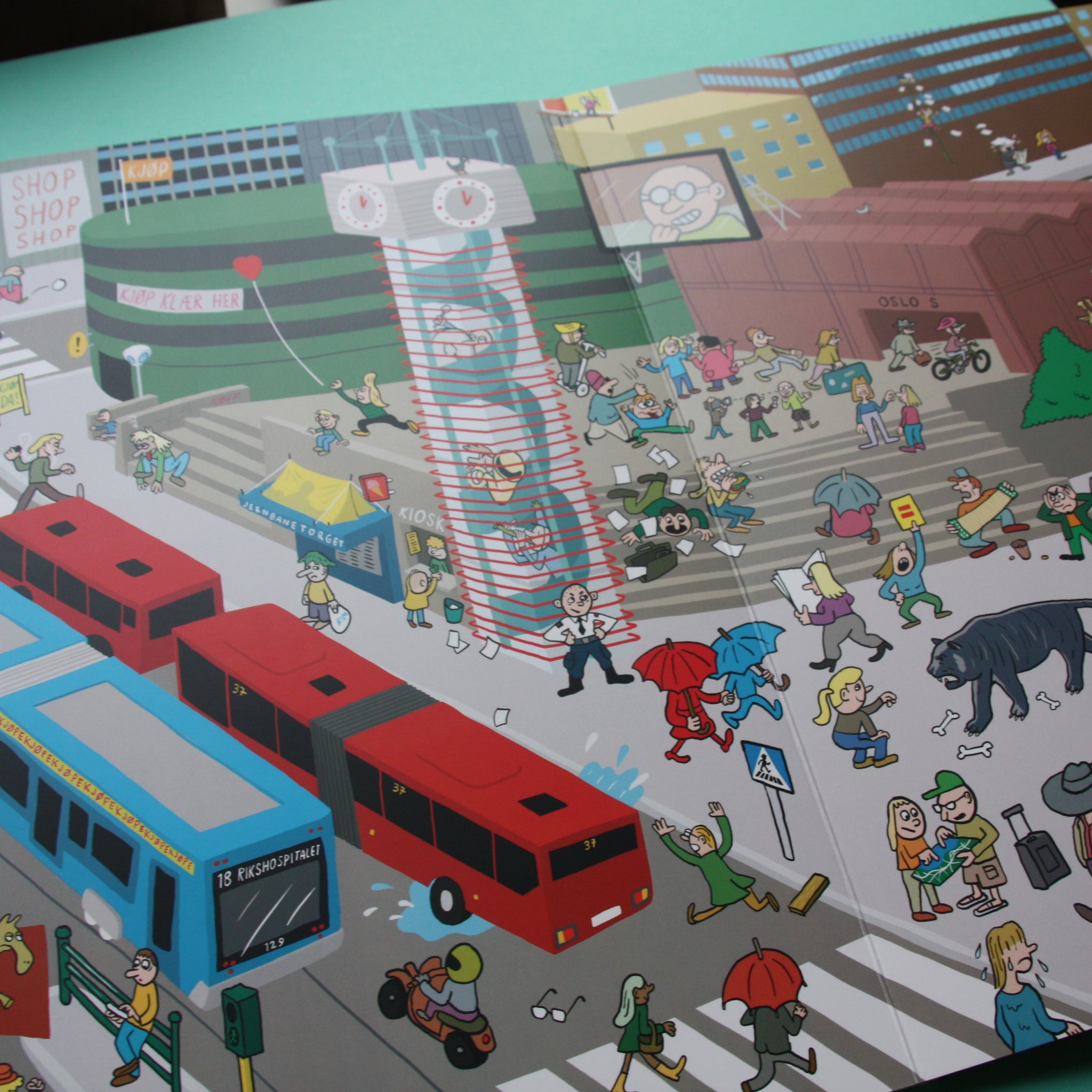 En ordløs myldrebok, med kjente motiver fra Oslo. Illustrasjonene til Kristoffer Kjølberg er lekne og fargerike. Her er det mange morsomme situasjoner å se på!