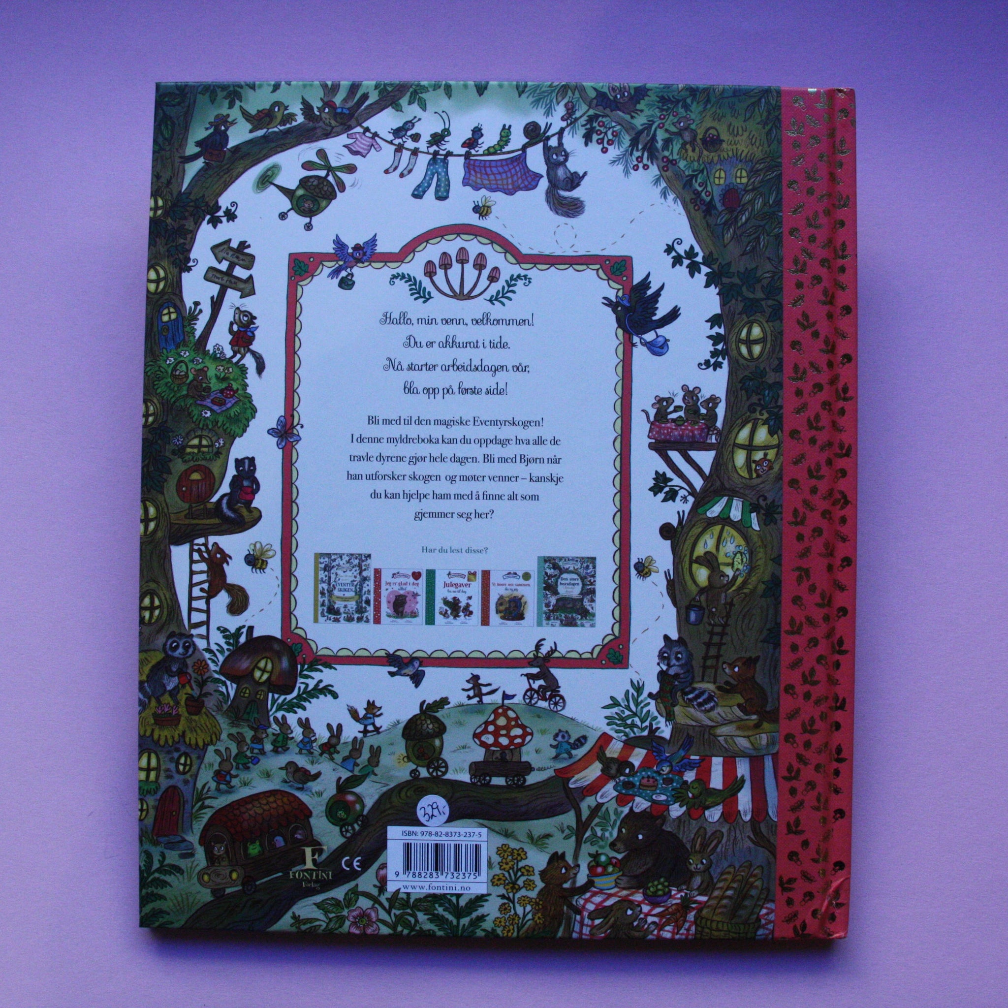 Det myldrer av liv når Eventyrskogens travle dag begynner! Bli med dyrene i Eventyrskogen på jobb. Her er det alltid mye som skjer. Hopp på sykkelen og bli med Bjørn på tur rundt i skogen, mens han besøker lærer Ugle på skolen, Ekorn i grønnsaksboden, Mamma Rev på politistasjonen og så klart Pappa Stinkdyr på brannstasjonen. Lær om Eventyrskogens spennende yrker. Hva vil Bjørn bli når han blir stor, mon tro? Perfekt for 2–6 år.