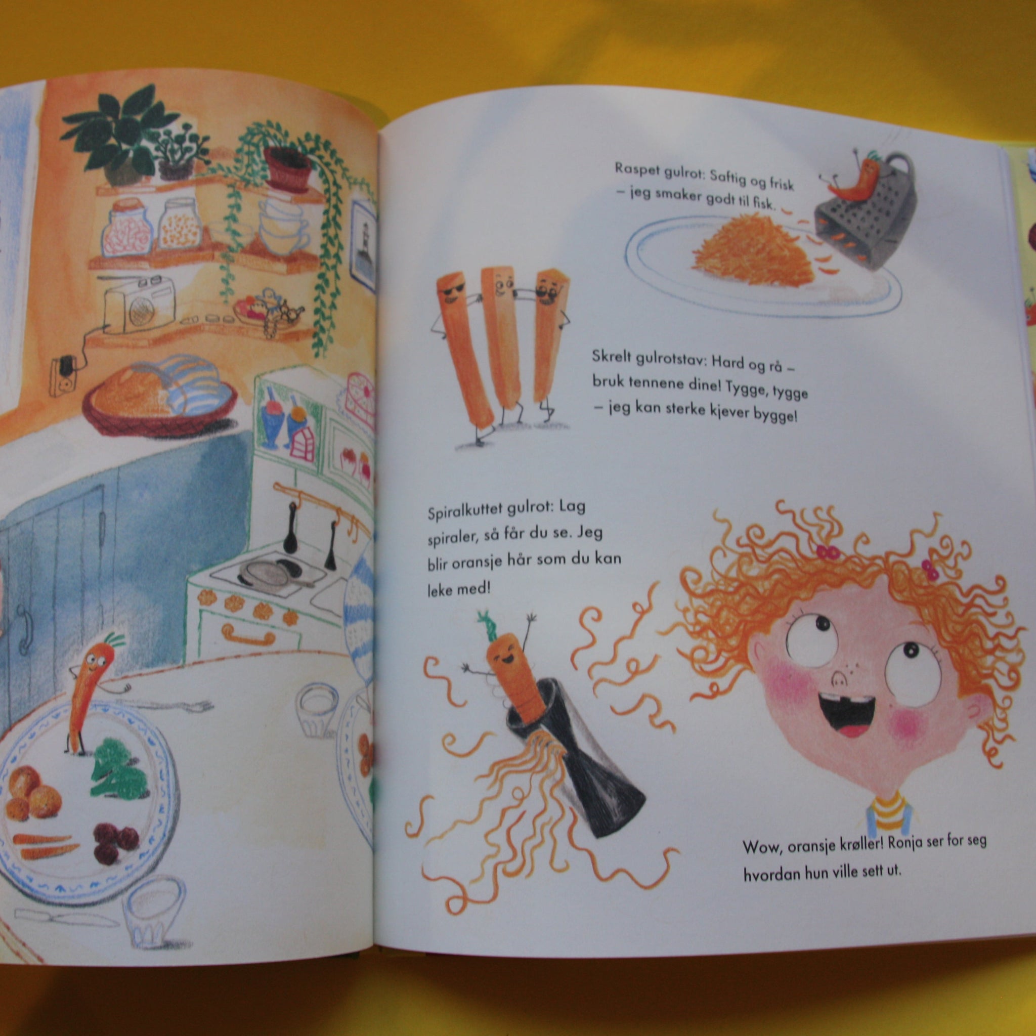 Men så skjer det noe rart: Under måltidet våkner maten til liv! Ronja møter både egg i superheltkappe og spretne poteter.