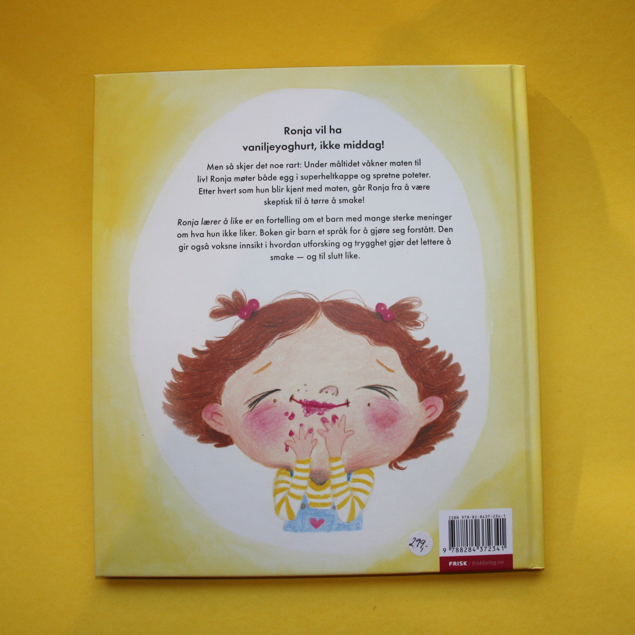 Ronja lærer å like er en fortelling om et barn med mange sterke meninger om hva hun ikke liker. Boken gir barn et språk for å gjøre seg forstått. Den gir også voksne innsikt i hvordan utforsking og trygghet gjør det lettere å smake — og til slutt like.